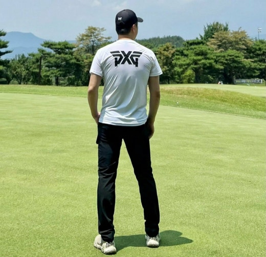 ➡️ 등판에 PXG 빅로고 플레이를 통해 포인트를 준 여름 라운드 반팔 티셔츠
