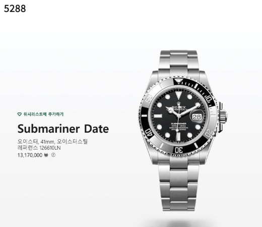 로렉스 서브마리너 데이트 블랙 실버 남성용(1컬러)