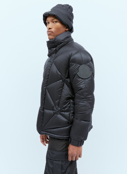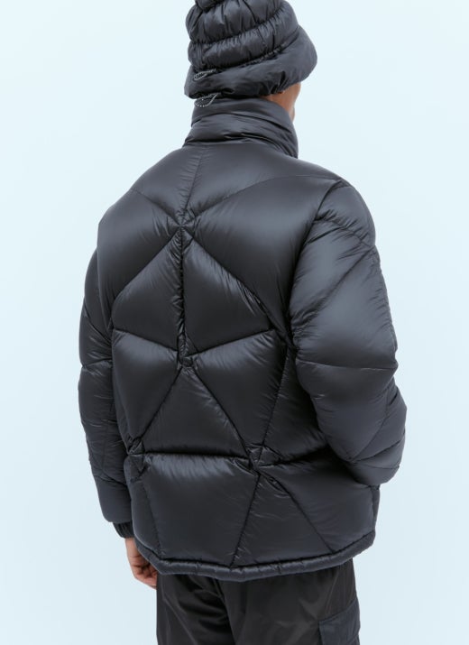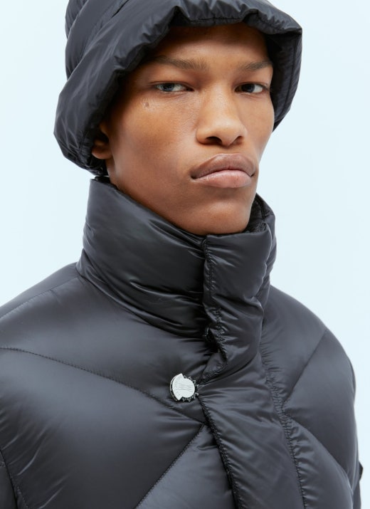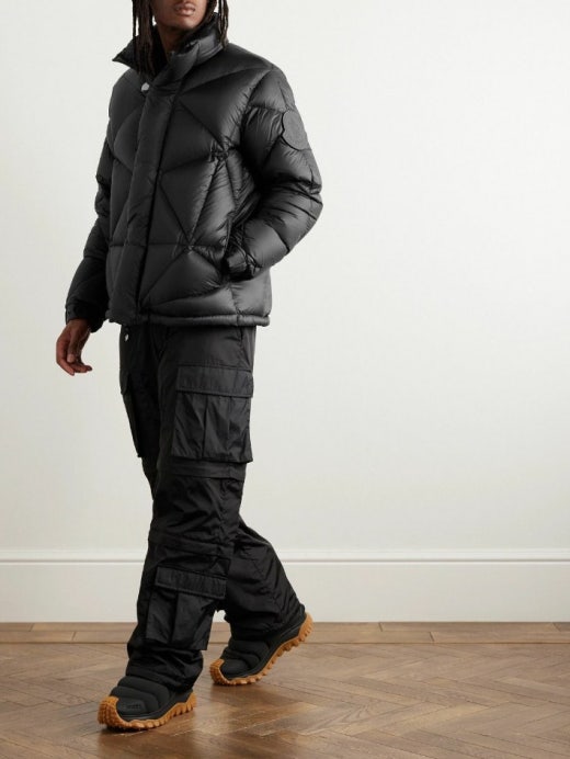 이 컬렉션의 일부인 이 재킷은 두꺼운 다운 충전재가 있는