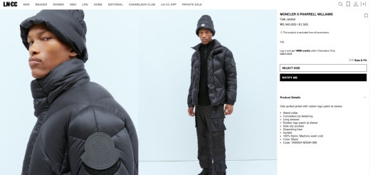 몽클레어 x 퍼렐 윌리엄스 오크 쇼트 다운 자켓 블랙 남여공용(1컬러)