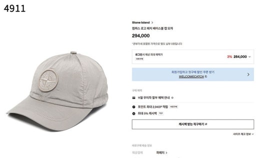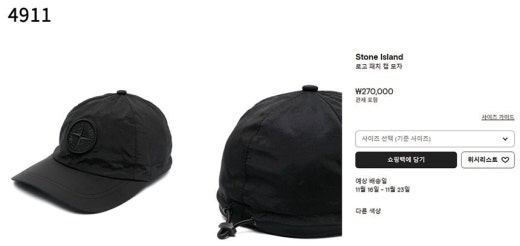 스톤아일랜드 컴퍼스 로고 패치 베이스볼 캡 모자 남여공용(2컬러)