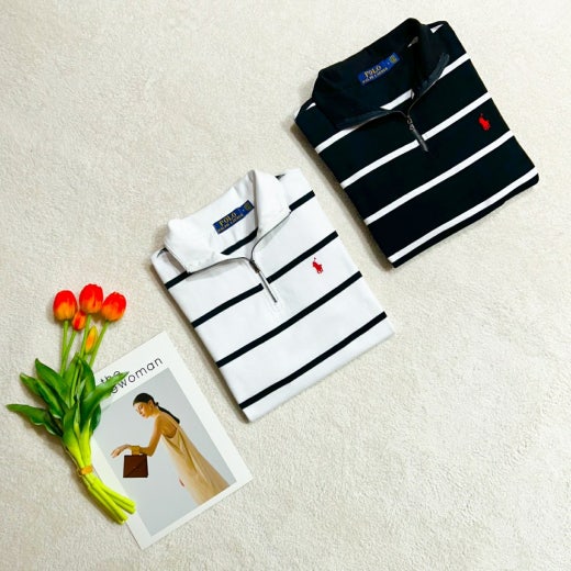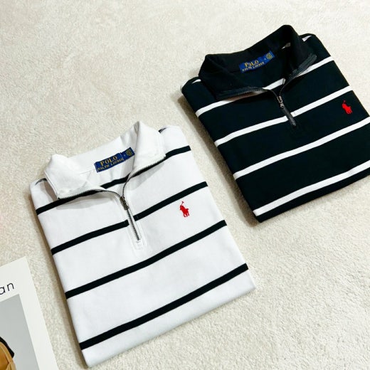 * 세련된 분위기로 편안하게 착용하시기 좋은 POLO 스트라이프 반집업 신상 입니다.