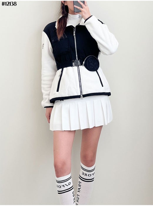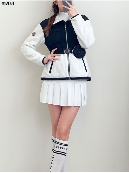 지포어 벨티드 컬러 블럭 누빔 플리스 점퍼 블랙 여성용(1컬러)