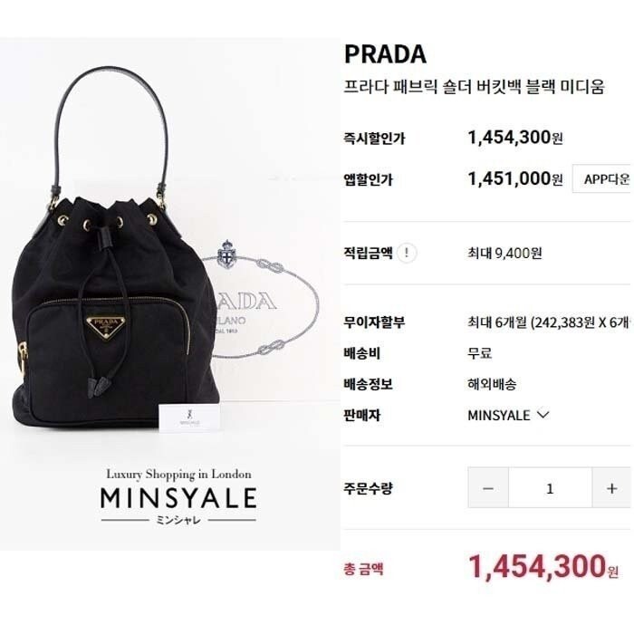 프라다 패브릭 숄더 버킷백 스몰 여성용(1컬러)