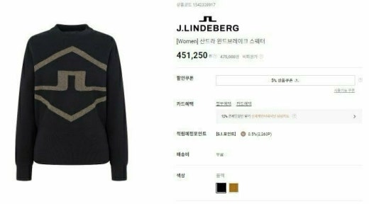 제이린드버그 매.장.판 산드라 윈드브레이크 스웨터 블랙 여성용(1컬러)
