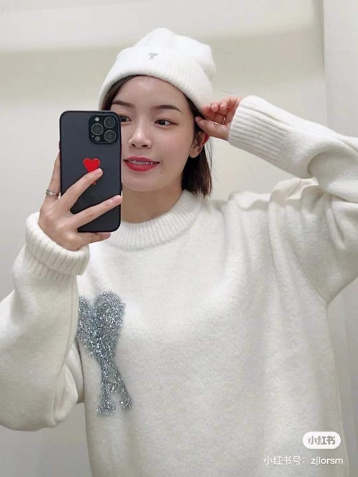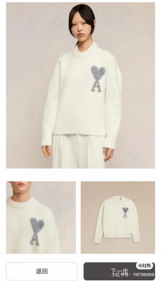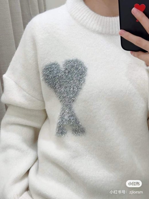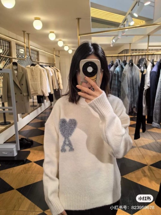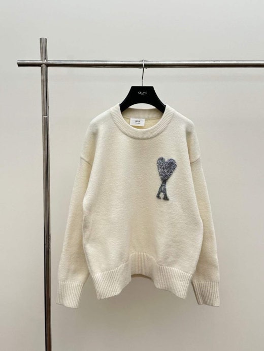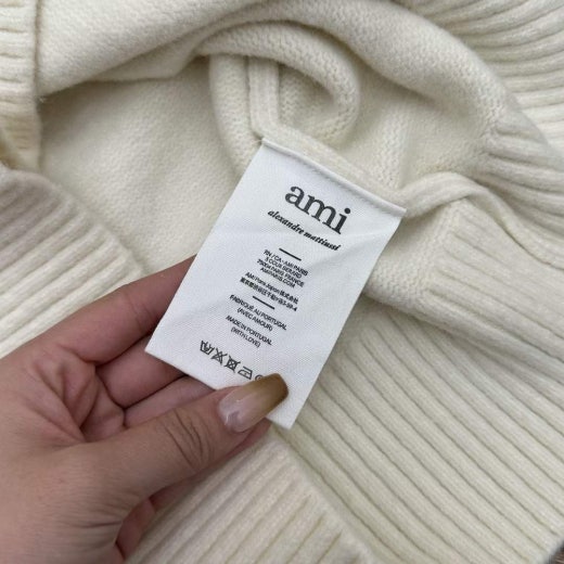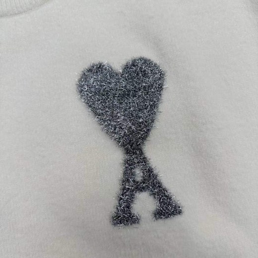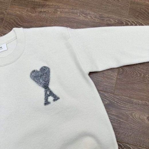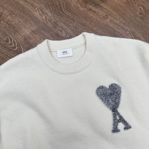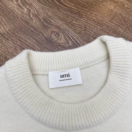 아미 펄 빅로고 알파카 울라운드 니트 화이트 남성용(1컬러)