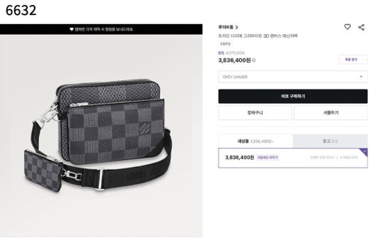 루이비통 트리오 다미에 그라파이트 3D 캔버스 메신저백 남여공용(1컬러)