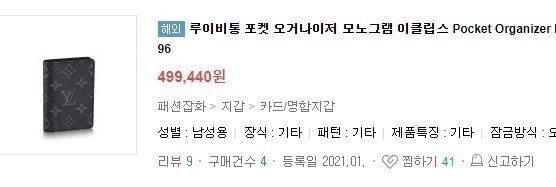 루이비통 포켓 오거나이저 모노그램 이클립스 캔버스 카드지갑 남여공용(1컬러)