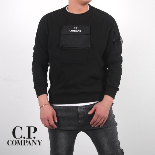 CP컴퍼니 앞포켓 렌즈맨투맨 블랙 남성용(1컬러)