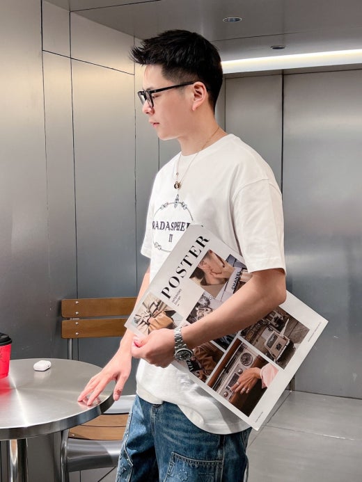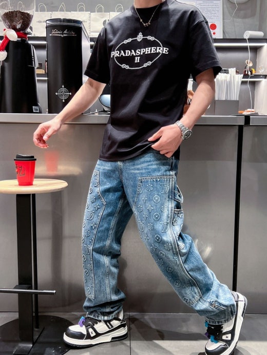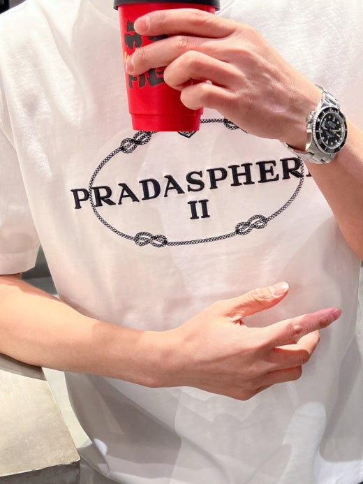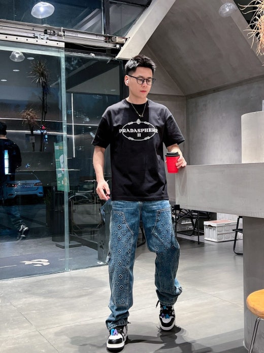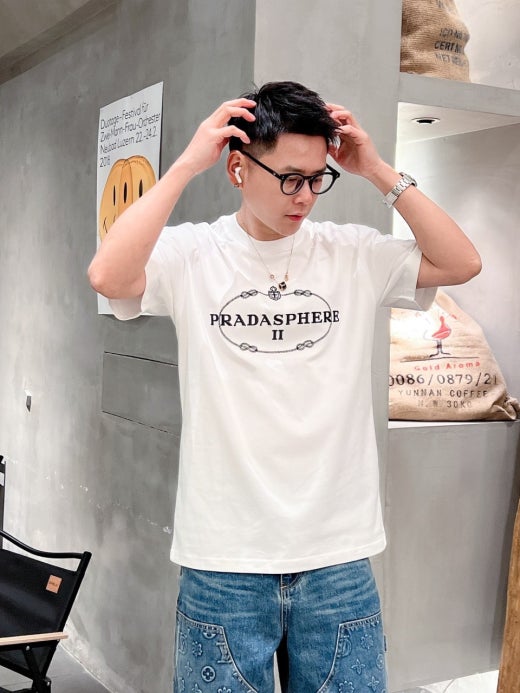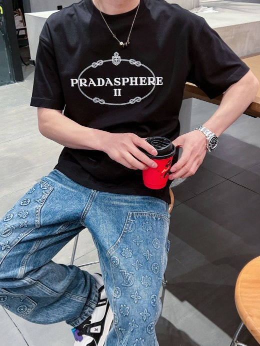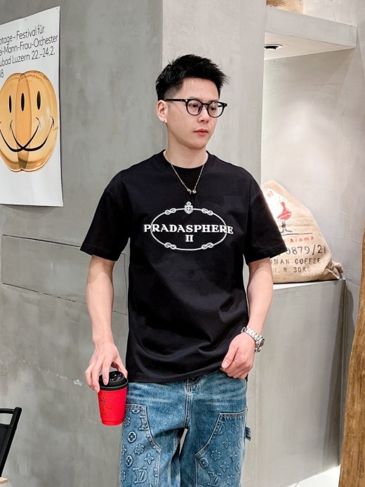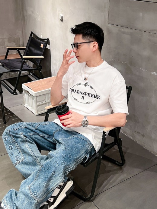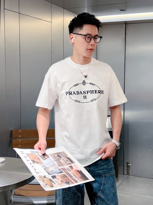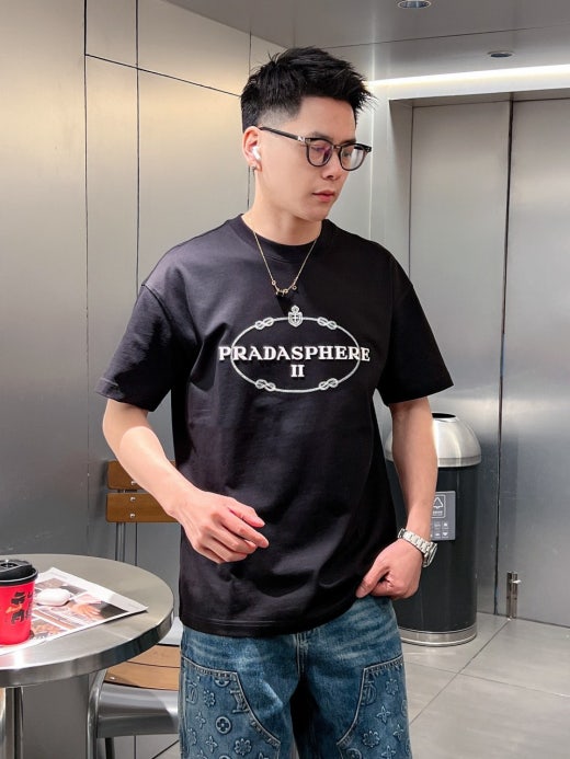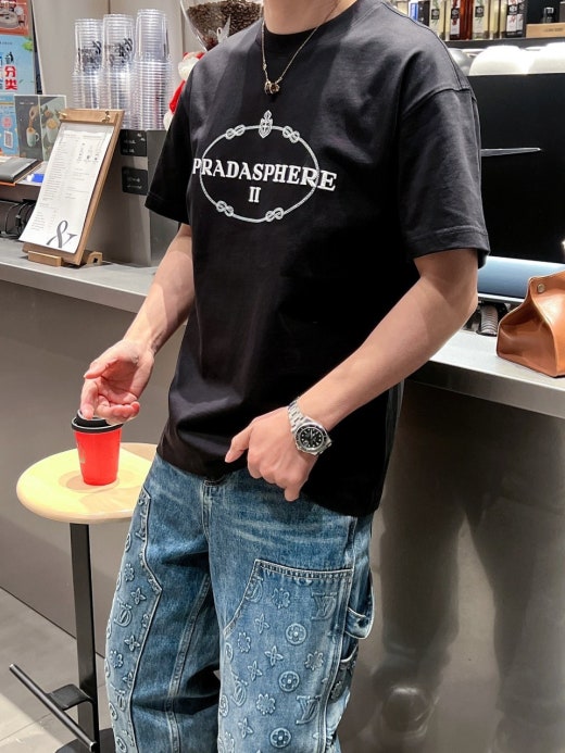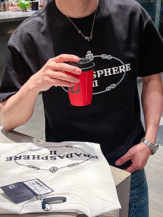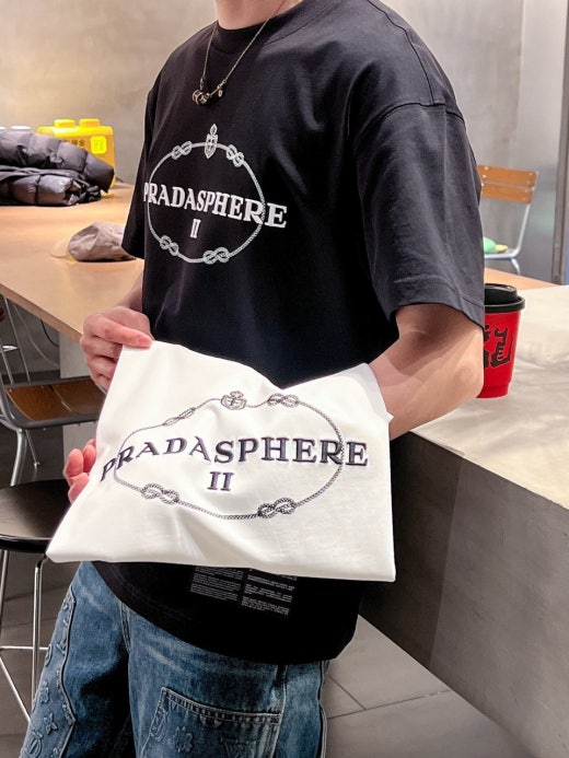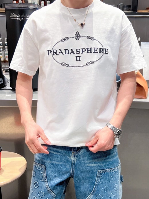 프라다 자수로고 실크 오버라운드 반팔티셔츠 남성용(2컬러)