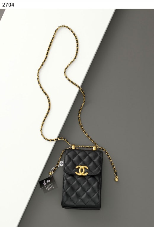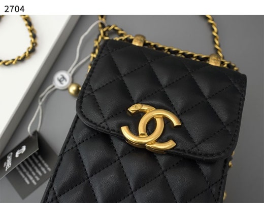 샤넬 금장 램스킨 폰 홀더백 블랙 여성용(1컬러)