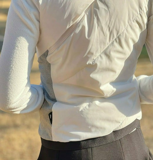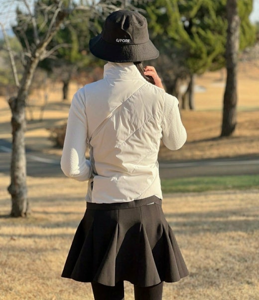 ➡️ ULTRA LIGHT WEIGHT RECYCLE . 경량 다운 베스트이며 스윙 및 활동시 용이하게 등판 절개 밴딩 패턴 적용