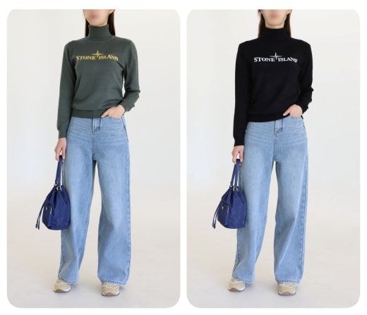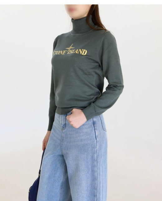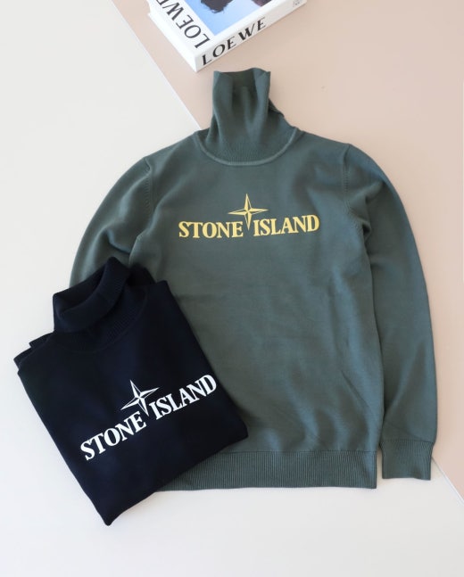 스톤아일랜드 시그니처 로고 프린트 터틀넥 남여공용(2컬러)
