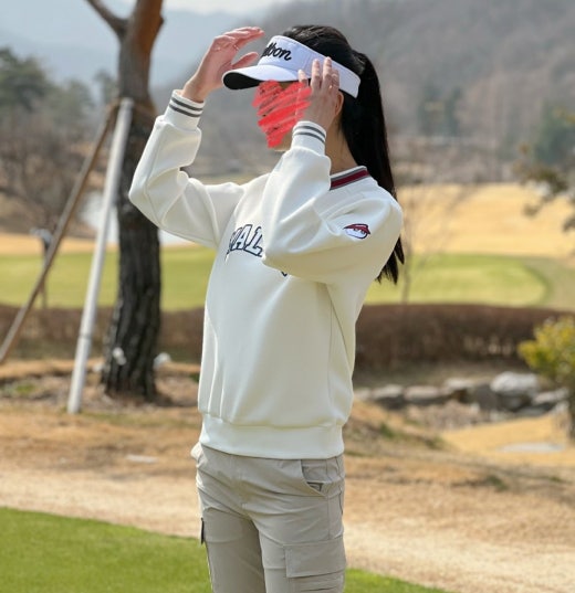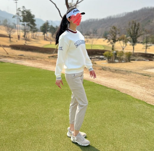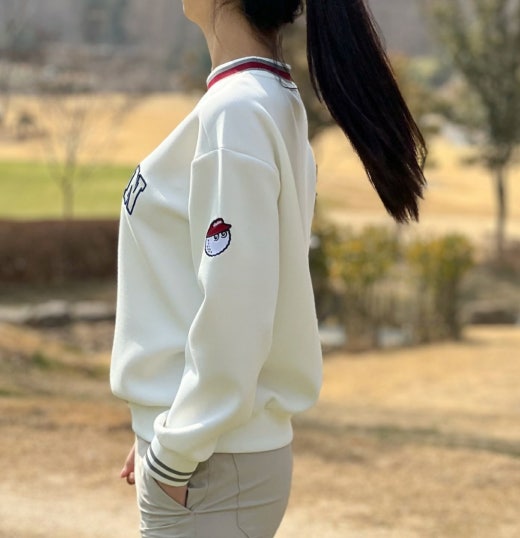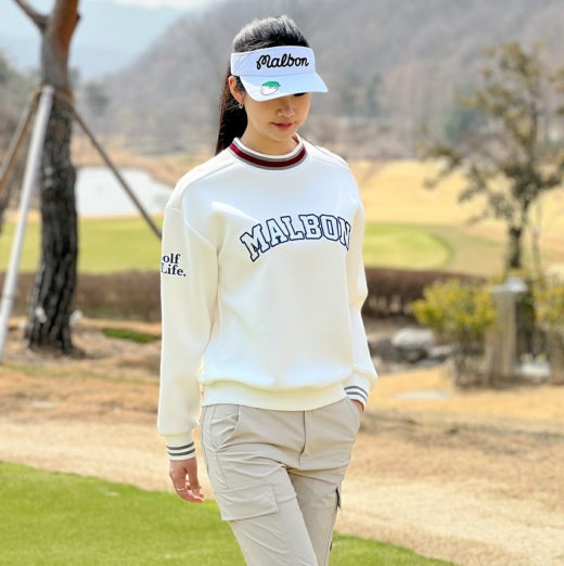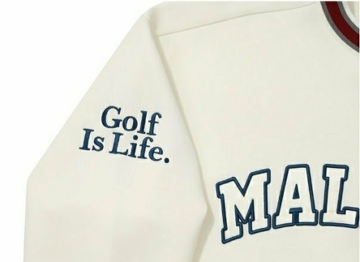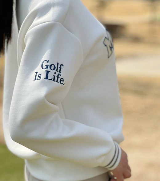 ➡️ 양쪽 소매에 Golf is Life 로고와 버킷 포인트가 있으며, 가슴 중앙 말본 스크립트가 포인트.