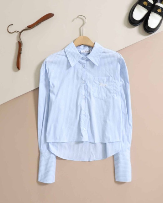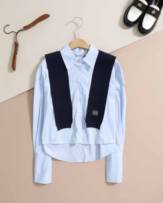 로에베 숄카라 스트라이프 케이프 셔츠 블루스트라이프 여성용(1컬러)