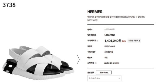 에르메스 일렉트릭 샌들 화이트 남성용(1컬러)