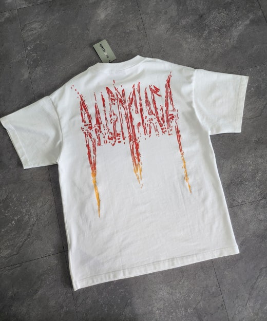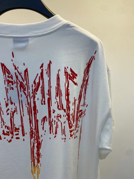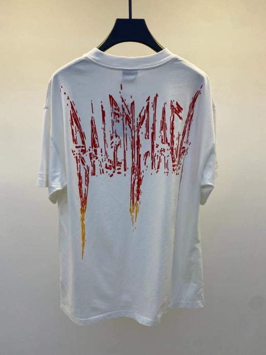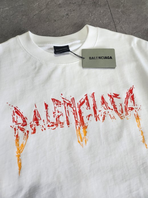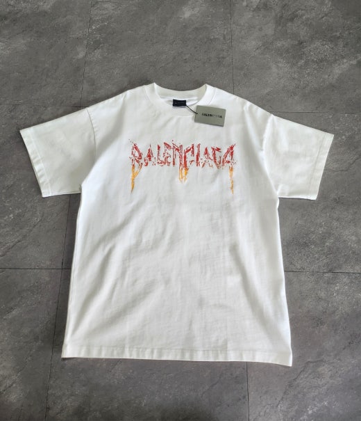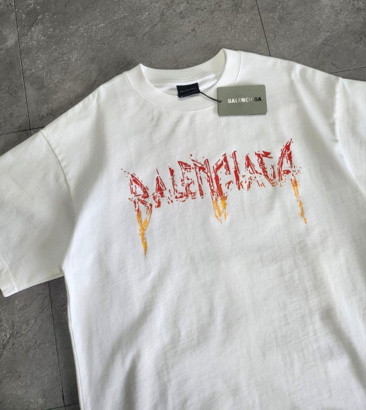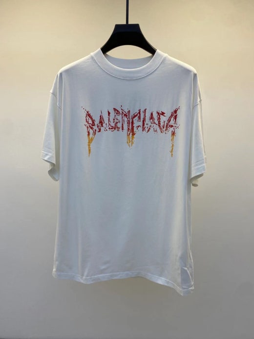 발렌시아가 메탈로고 오버핏 라운드 반팔티셔츠 화이트 남여공용(1컬러)