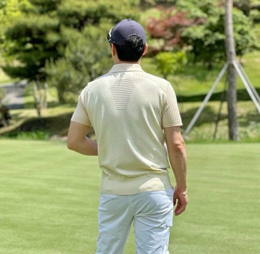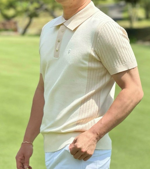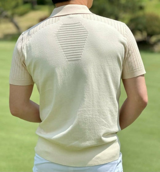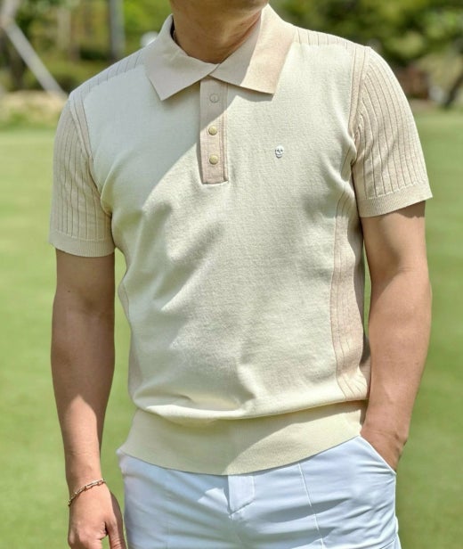 ➡️ 부분 골조직 반팔 카라 스웨터