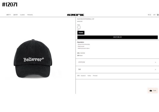 SMFK BELIEVER 빌리버 베이스 볼캡 블랙 남여공용(1컬러)
