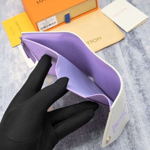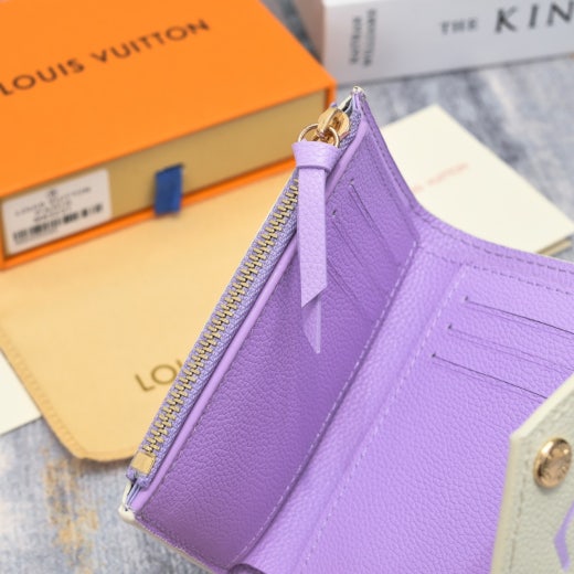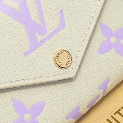 이번 시즌을 맞아 두 가지 파스텔 색상의 모노그램 앙프렝뜨 가죽으로 선보이는 빅토린 월릿. 매우 세련된 분위기를 자아내는 은은한 바이컬러 색조의 작은 월릿. 루이 비통이 각인된 프레스 스터드로 고정하는 엔벨로프 스타일의 플랩. 크기는 작지만 지폐, 동전 및 카드를 모두 보관할 수 있는 넉넉한 수납공간.