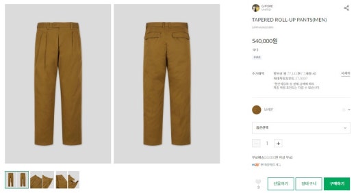 지포어 매.장.판 테이퍼드 롤업 팬츠 베이지 남성용(1컬러)