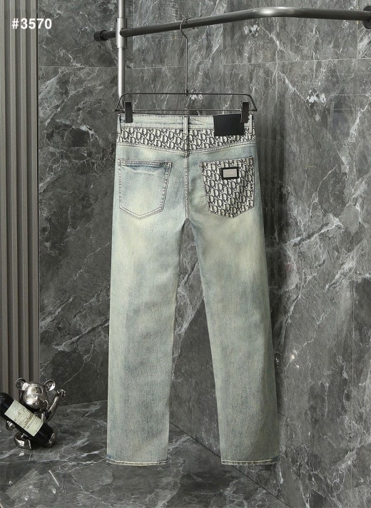 디올 오블리크 CD 스틸로고 패치 워싱 데님 팬츠 연청 남성용(1컬러)