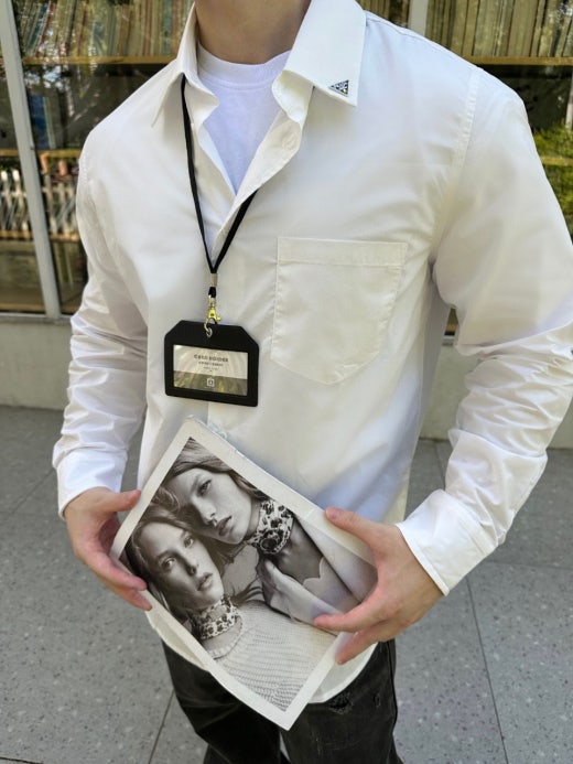 프라다 칼라 메탈 트라이앵글 로고 셔츠 남성용(1컬러) 📢해외