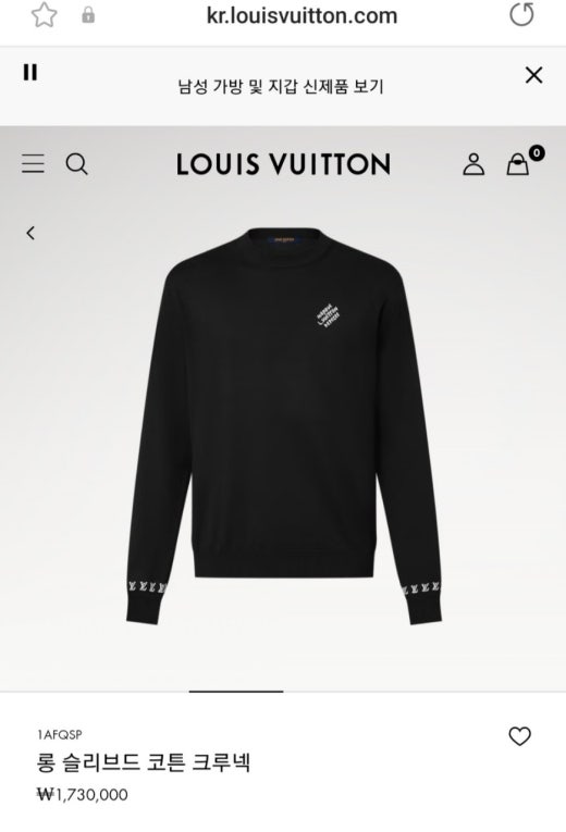 루이비통 소매 로고 롱슬리브 스웨터 블랙 남여공용(1컬러)