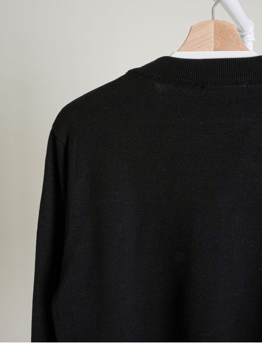 블랙 색상의 오가닉 울니트 소재로 선보이는 스마트한 크루넥.