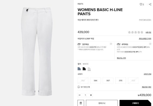 PXG 매.장.판 우먼 베이직 H-라인 팬츠 화이트 여성용(1컬러)