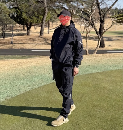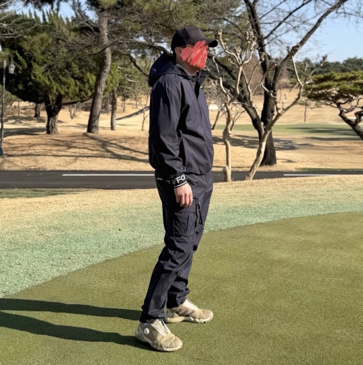 ➡️ 기능성 폴리 스판 소재의 아노락 윈드브레이커 와 카고 팬츠 세트.