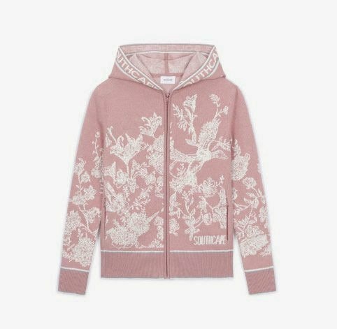 ➡️ 섬세한 그래픽을 볼륨감 있고 입체적인 자카드 조직으로 표현한 오픈 지퍼 후드 가디건.