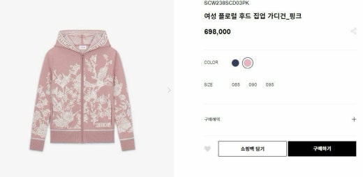 사우스케이프 매.장.판 플로럴 후드 집업 가디건 핑크 여성용(1컬러)