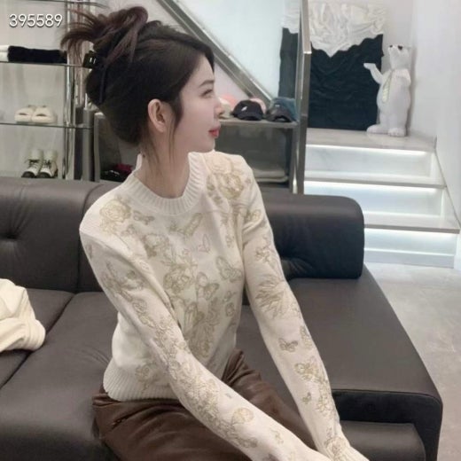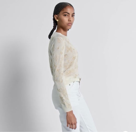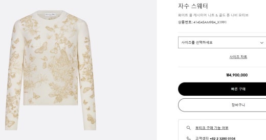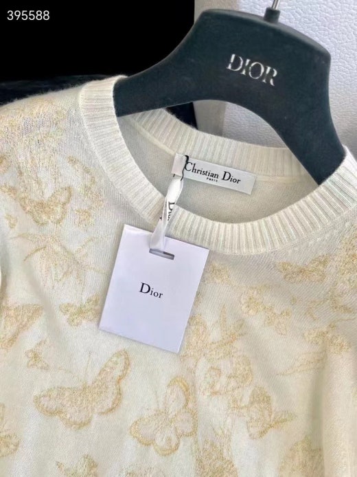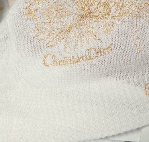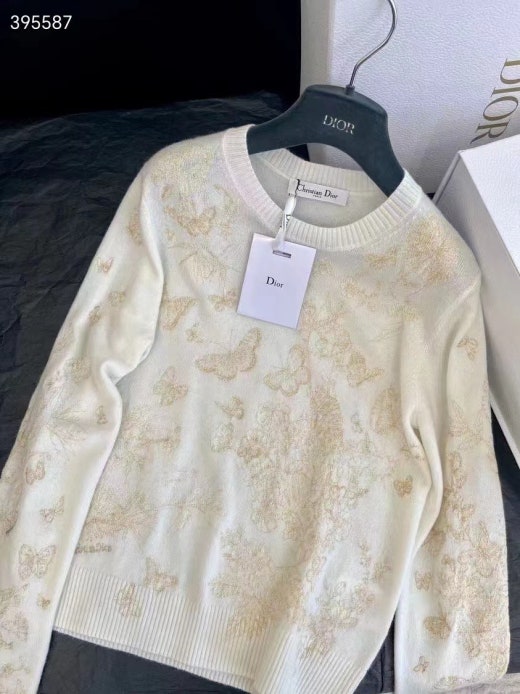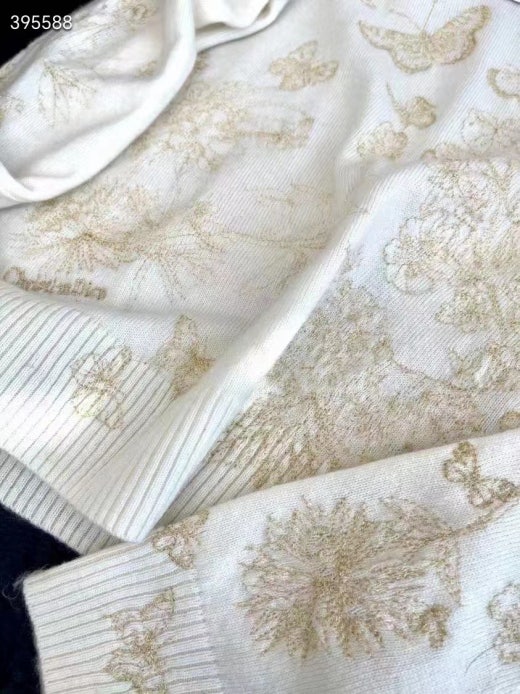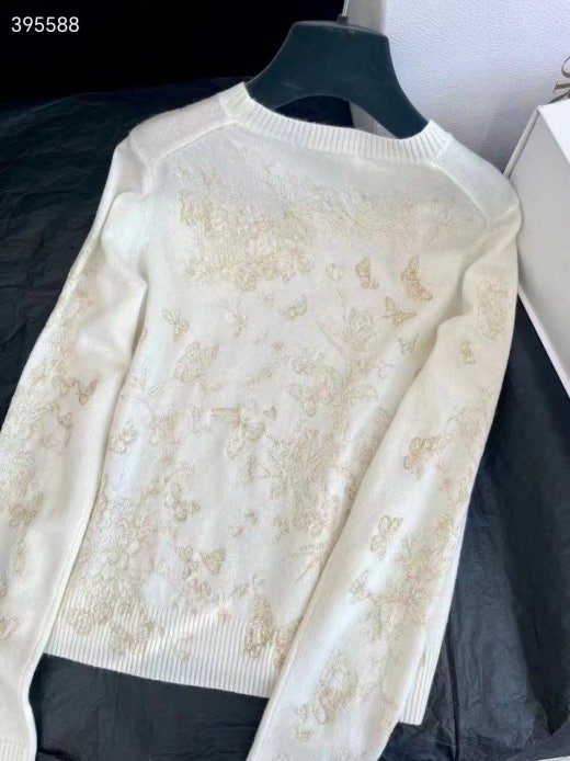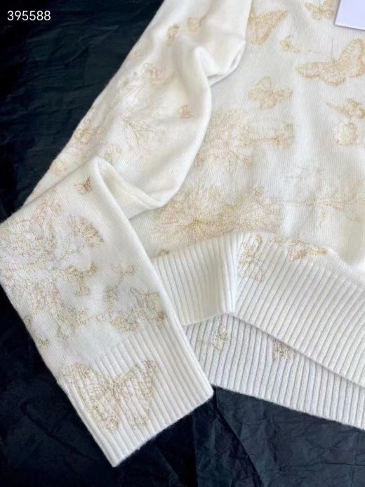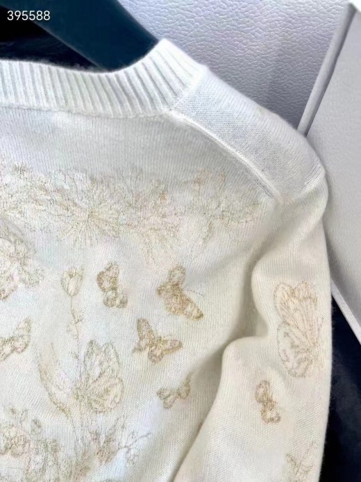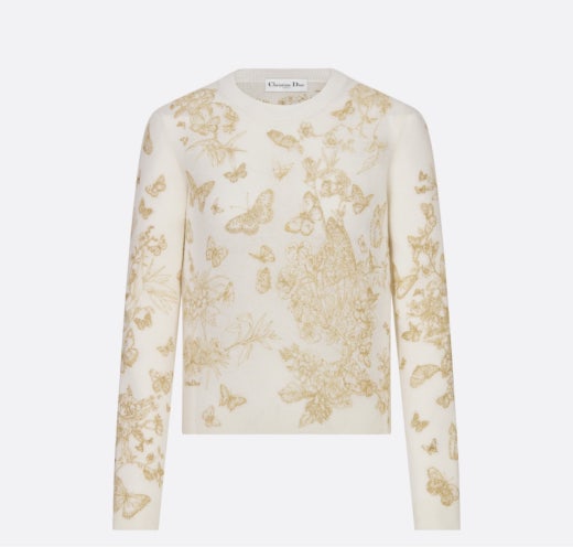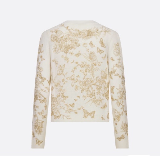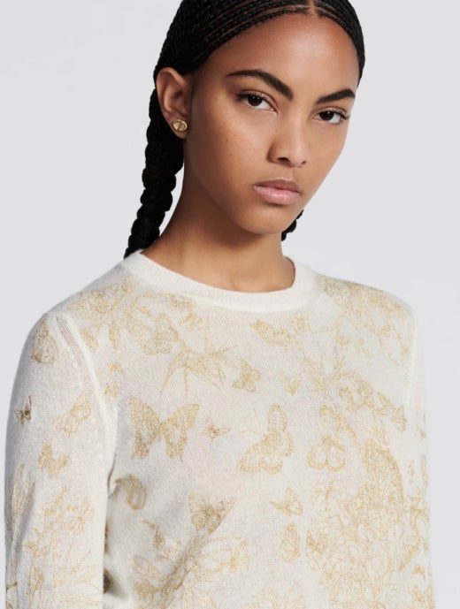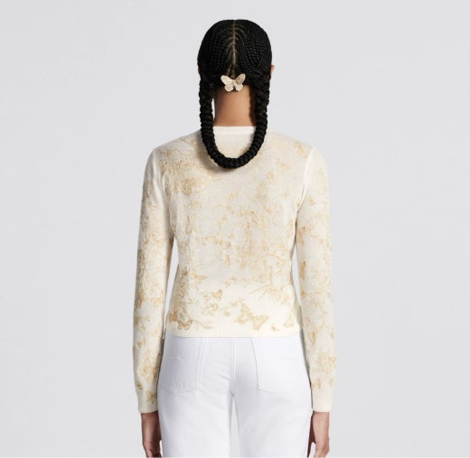 디올 자수 스웨터 울 캐시미어 니트 & 골드 톤 나비 모티브 화이트 여성용(1컬러)