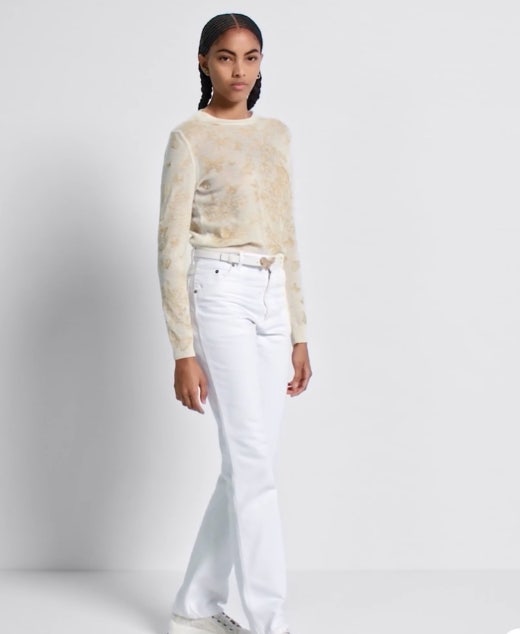 -이번 컬렉션의 시그니처 나비 테마를 담은 골드 톤 나비 모티브의 스웨터입니다.