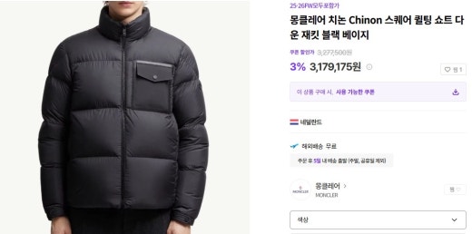 몽클레어 매.장.판 치논 스퀘어 퀄팅 쇼트 다운 블랙 남성용(1컬러)