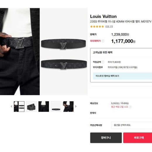 루이비통 이니셜 리버서블 벨트 블랙타이가 남성용(1컬러) ⚓843