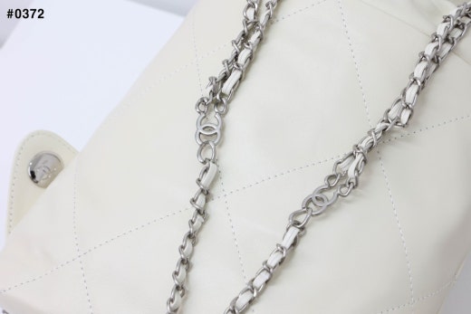 샤넬 22 스몰 카프스킨 은장 백팩 화이트(은장) 여성용(1컬러)