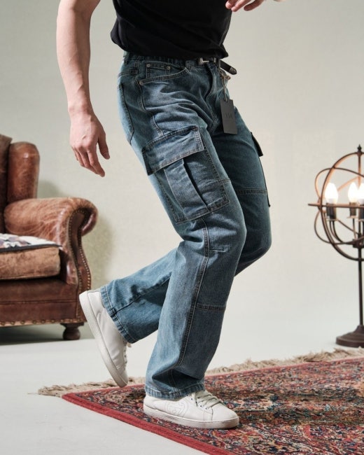 무스너클 쉐이크 데님 카고 연청 남성용(1컬러)