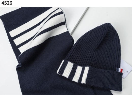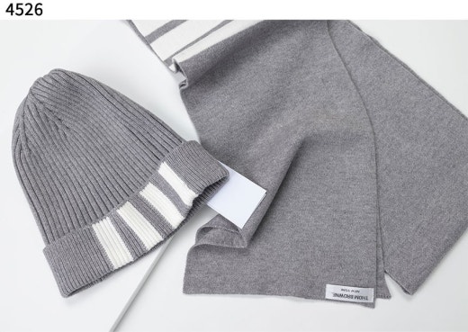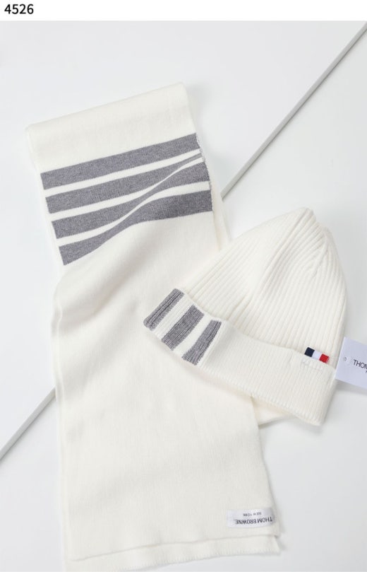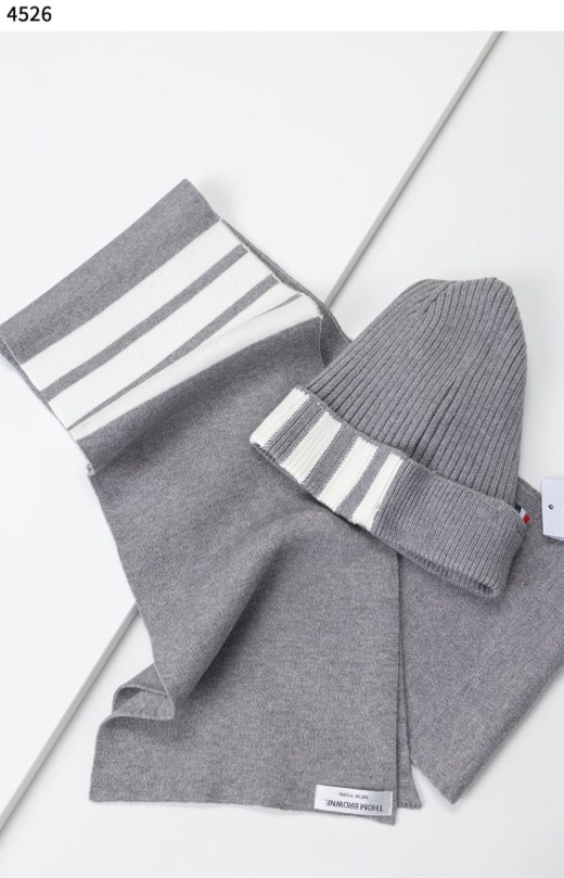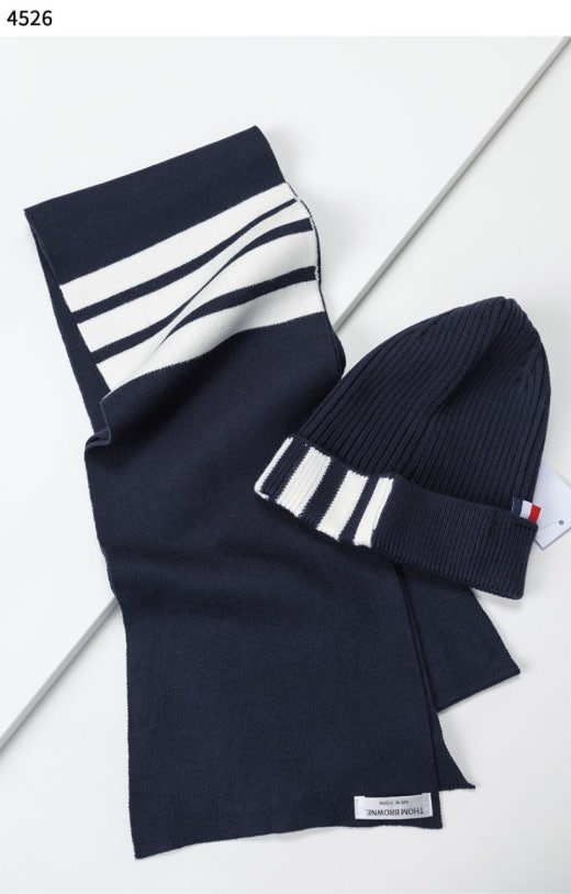 톰브라운 4바 스트라이프 리브 머플러&비니 세트 남여공용(3컬러)
