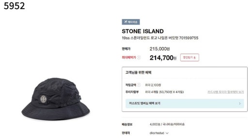 스톤아일랜드 로고 나일론 버킷햇 남여공용(2컬러)