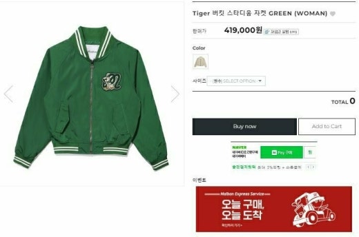 말본 Tiger 버킷 스타디움 자켓 그린 여성용(1컬러)