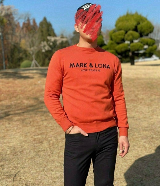 마크앤로나 매.장.판 맨즈 와펜 라운드 스웨터 오렌지 남성용(1컬러)
